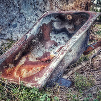 Dans un virage, cet immense portail recouvert d'un chapeau d'arbres morts me laisse une sensation surprenante.